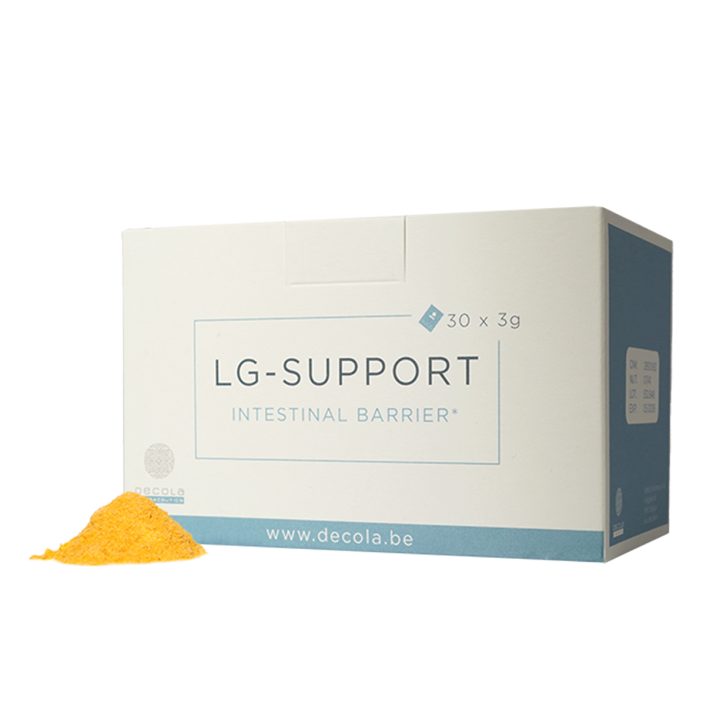 Le LG-Support est un complément nutritionnel sous forme de poudre à diluer dans une boisson. Elle contient des nutriments, des fibres et des extraits végétaux réputés pour leur action protectrice sur la muqueuse intestinale et son rôle de barrière.