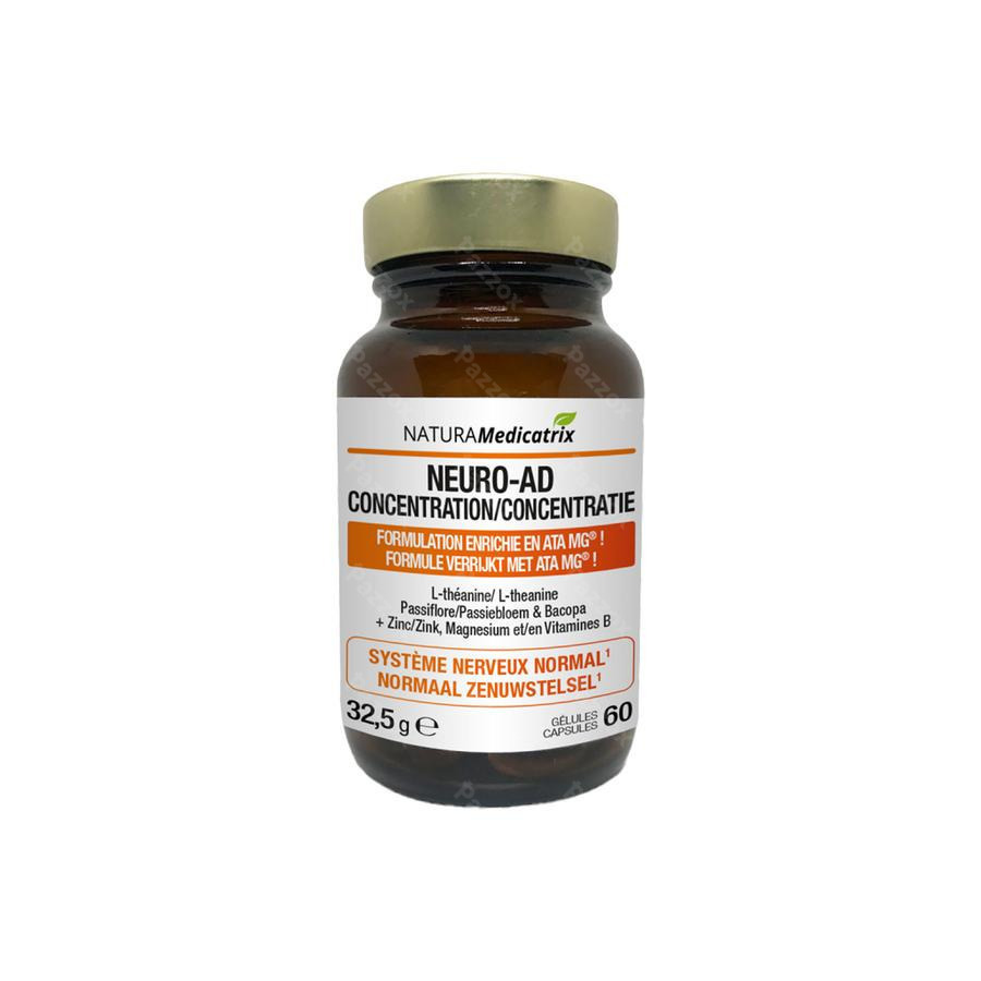 Neuro-AD Concentration est un complément alimentaire naturel. C’est une formulation unique avec une synergie de micro-nutriments et plantes bénéfiques pour votre système nerveux (vitamines B, Bacopa, Passiflore…).